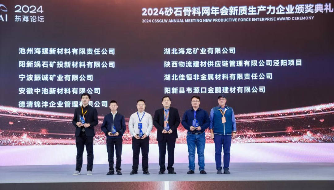 近日,2024年砂石骨料網(wǎng)年會新質(zhì)生產(chǎn)力企業(yè)頒獎典禮在浙江湖州圓滿落幕,集團所屬中池公司榮獲“2024年砂石行業(yè)新質(zhì)生產(chǎn)力示范企業(yè)”稱號。