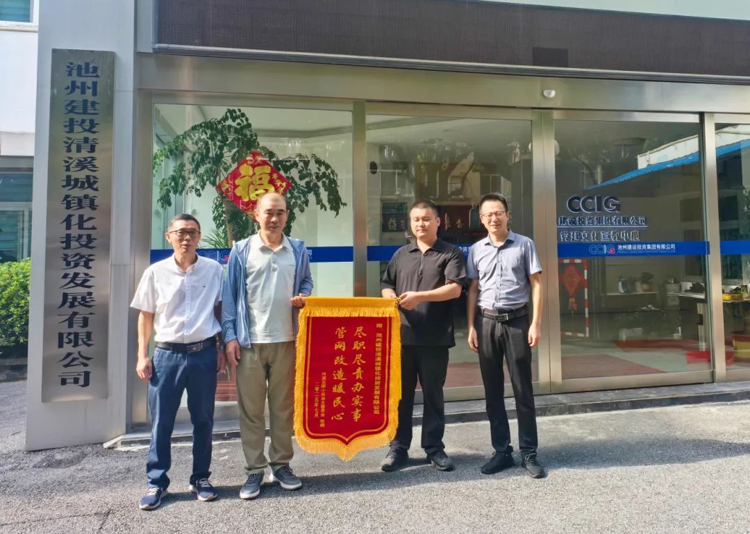 近日,河濱花園業(yè)主委員會代表全體居民將一面寫滿贊譽(yù)的錦旗送到集團(tuán)所屬清投公司。這面錦旗承載著居民們對主城區(qū)排水防澇綜合能力提升項(xiàng)目的高度認(rèn)可,對公司積極作為、高效解決民生難題的誠摯感謝。