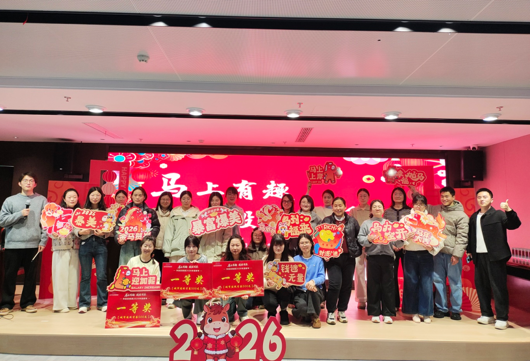 打卡過后,元宵歡樂盛宴正式開啟,7支隊(duì)伍同臺(tái)參與馬年主題團(tuán)體游戲,花式游戲輪番上陣,全程笑聲不停!大家默契協(xié)作、同臺(tái)比拼,在歡樂互動(dòng)中攢積分、爭榮譽(yù),賽后順利決出團(tuán)體冠亞季軍,實(shí)力與快樂雙豐收。