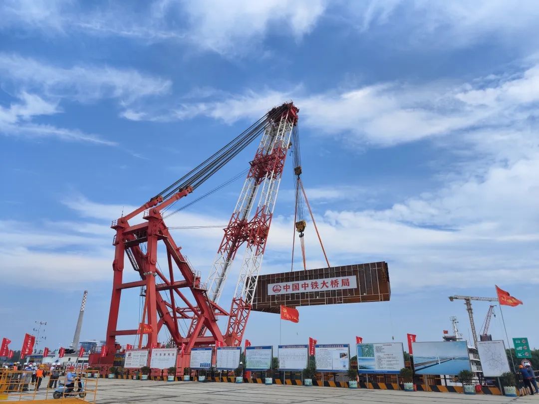 據(jù)悉,南主塔墩(4號墩)圍堰采用雙壁鋼套箱結(jié)構(gòu),總高29米,總重約5558.32噸,共分為四節(jié)吊裝,本次吊裝安裝完成的是底節(jié)圍堰,平面尺寸為80.2米×52.2米,高9米,占地面積相當(dāng)于10個標(biāo)準(zhǔn)籃球場,高度相當(dāng)于3層樓房。其共分為4塊運(yùn)輸和安裝,單塊重量高達(dá)226.2噸。鋼圍堰在工廠制作完成后,通過自航式甲板貨船經(jīng)320公里的水上運(yùn)輸,到達(dá)指定橋位吊裝下放。