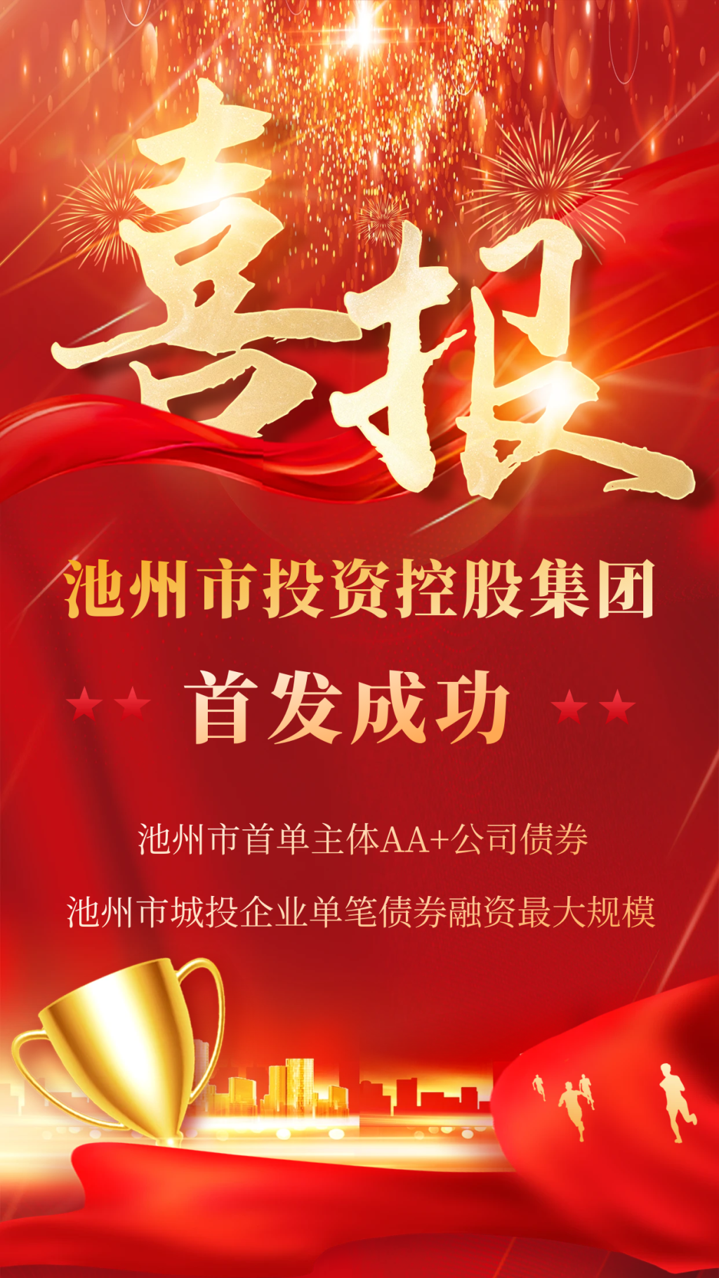 日前,池州市投資控股集團有限公司2023年面向專業(yè)投資者非公開發(fā)行公司債券(第一期)成功發(fā)行這是池州市首單主體AA+公司債券也是池州市城投企業(yè)單筆債券融資最大規(guī)模!