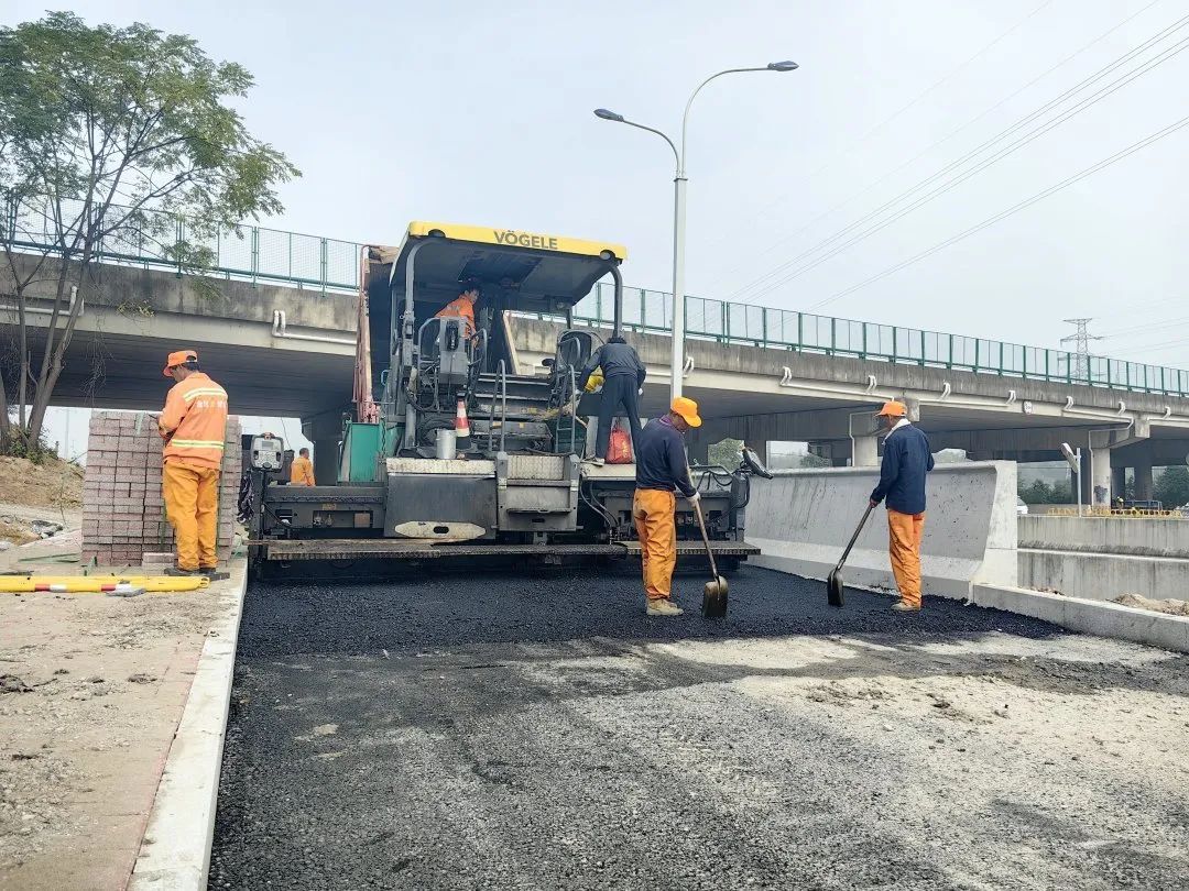 據(jù)池州市路橋建設(shè)工程有限公司長(zhǎng)江南路延伸段附屬工程項(xiàng)目經(jīng)理介紹,目前正在進(jìn)行的是瀝青面層鋪設(shè),預(yù)計(jì)三天左右就可完成整條道路的瀝青鋪設(shè)。