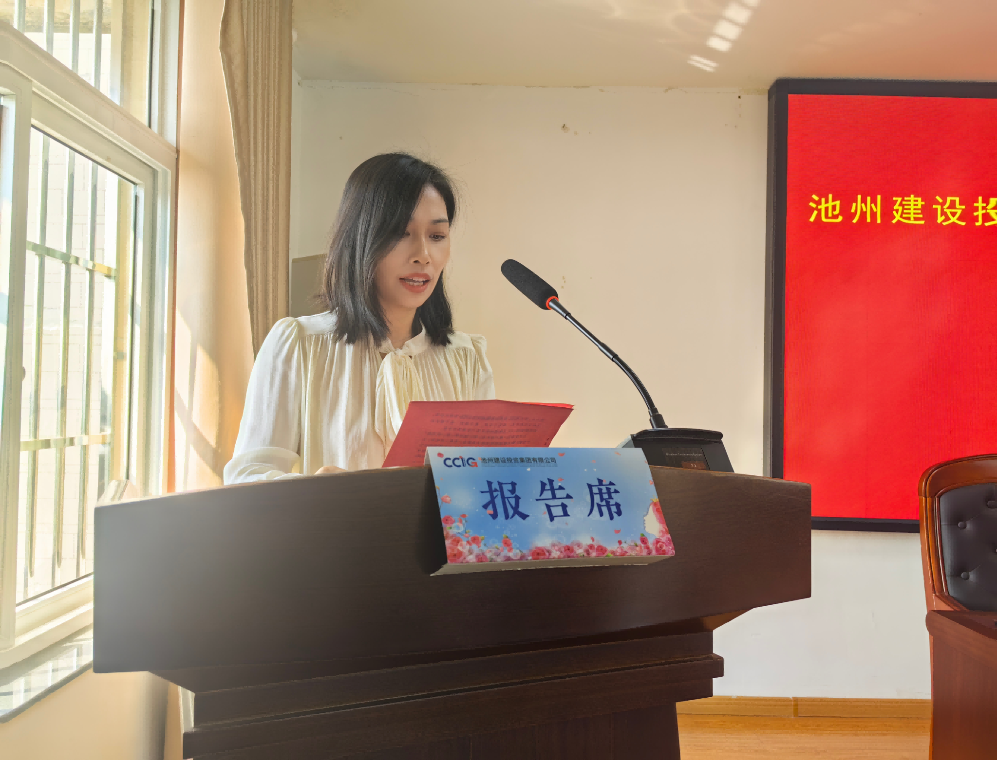 新當(dāng)選的婦聯(lián)主席胡麗平代表建投集團(tuán)第一屆執(zhí)行委員會(huì)作了表態(tài)發(fā)言。