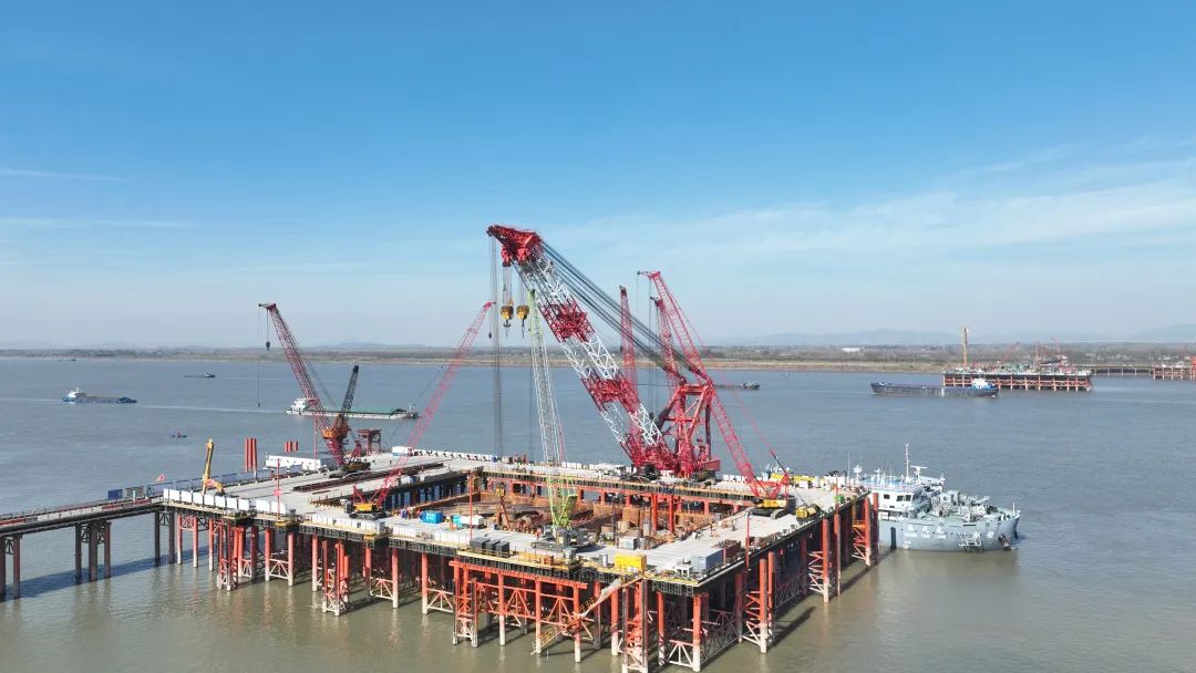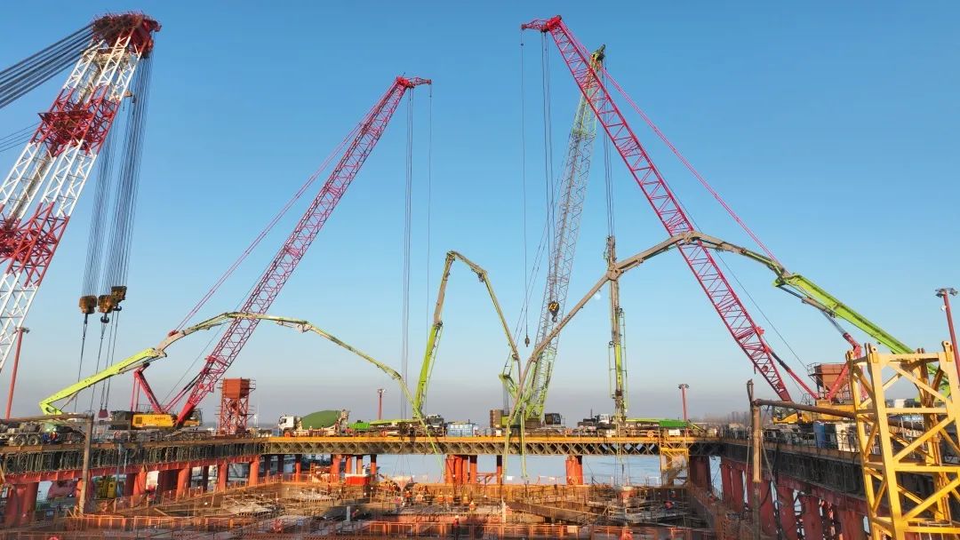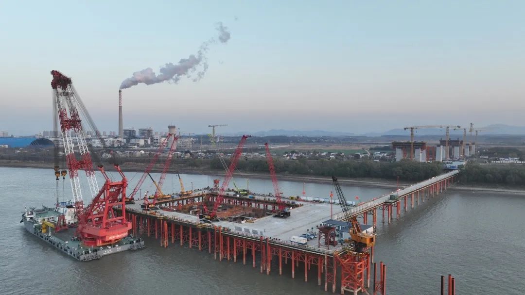 12月26日下午,在長江池州段離南岸大堤約380米處的江中施工點,隨著池州長江公鐵大橋4號墩圍堰內最后一方封底混凝土的灌入,由集團承建的池州長江公鐵大橋4號主墩圍堰封底順利完成,標志著池州長江公鐵大橋即將進入主墩承臺施工階段,為池州長江公鐵大橋主塔施工打下堅實基礎。