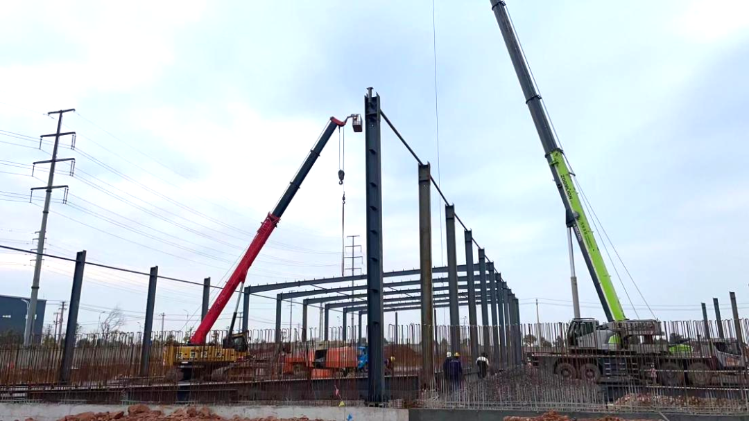 公用型保稅倉庫項(xiàng)目于2023年12月初正式開工建設(shè),項(xiàng)目建成后主要提供各種有色金屬及大宗散貨礦產(chǎn)品的倉儲(chǔ),報(bào)關(guān),報(bào)檢,報(bào)稅及物流配送等服務(wù)。復(fù)工以來,全體工作人員精神飽滿,拿出了開工即決戰(zhàn)、起步即沖刺的精神狀態(tài)投入到項(xiàng)目施工中。目前保稅倉庫鋼結(jié)構(gòu)鋼柱鋼梁已搭設(shè)完成,其附屬設(shè)施中制樣間、地磅棚、沉淀池基礎(chǔ)筏板等基礎(chǔ)設(shè)施已基本完成。商發(fā)公司將掛圖作戰(zhàn)、打表推進(jìn)公用型保稅倉庫項(xiàng)目建設(shè),確保項(xiàng)目早建成、早投運(yùn)、早見效。