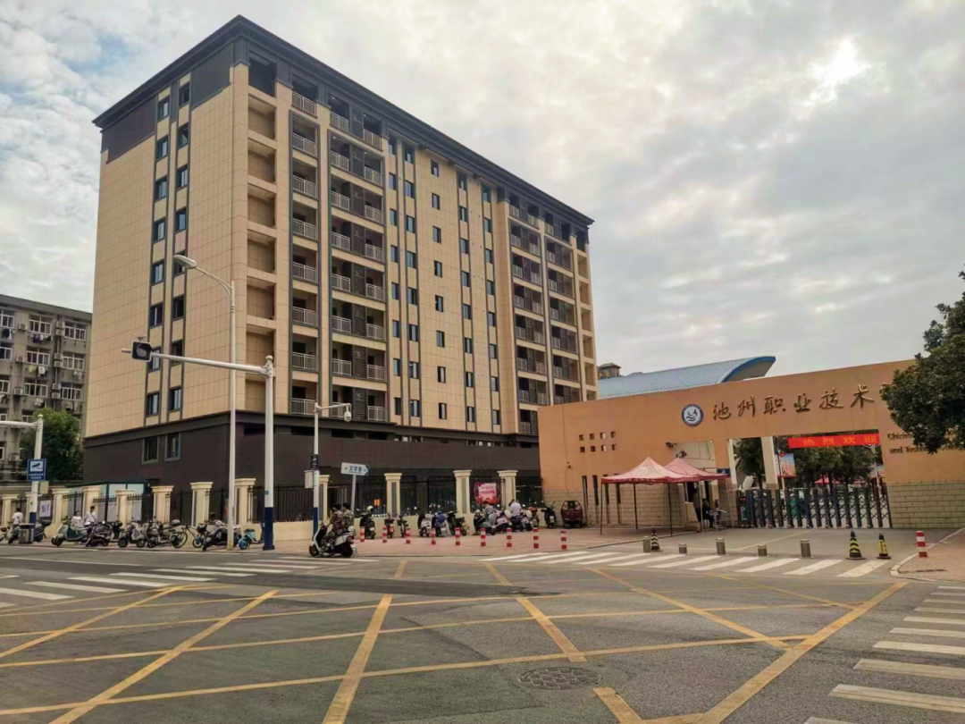 池州職業(yè)技術學院8#學生公寓樓項目緊鄰校園東大門,貼鄰虎泉路,建筑高度36.30米,總建筑面積為10209.06m2,地上10層,建筑面積9128.37m2,首層為學生配套服務用房,層高 4.2 米;2-9層為學生宿舍,共169間,層高3.3米;地下1層主要為消防水池、消防泵房和配電間,建筑面積1080.69m2;室外附屬主要包括宿舍樓周邊混凝土硬化、室外雨污水管網(wǎng)等。